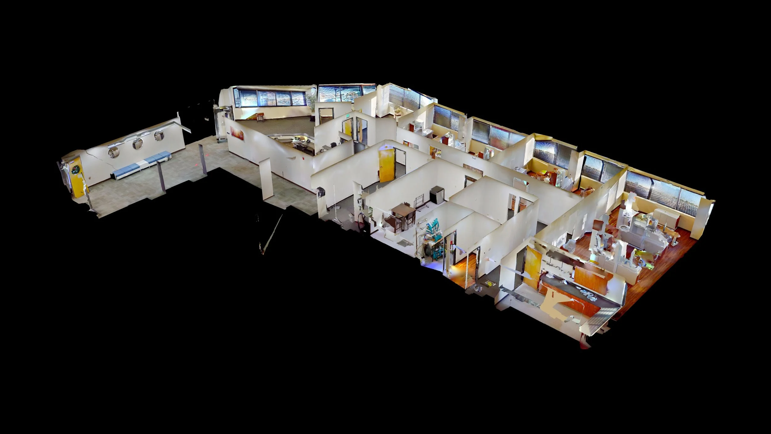 Powered by Matterport, 3D space capture provides a virtual tour experience for your clients. The 3D model is completely navigable as a virtual walk-through of nearly any space. This is a great visual tool for residential and commercial agents, vacation rental operators, and event space operators.